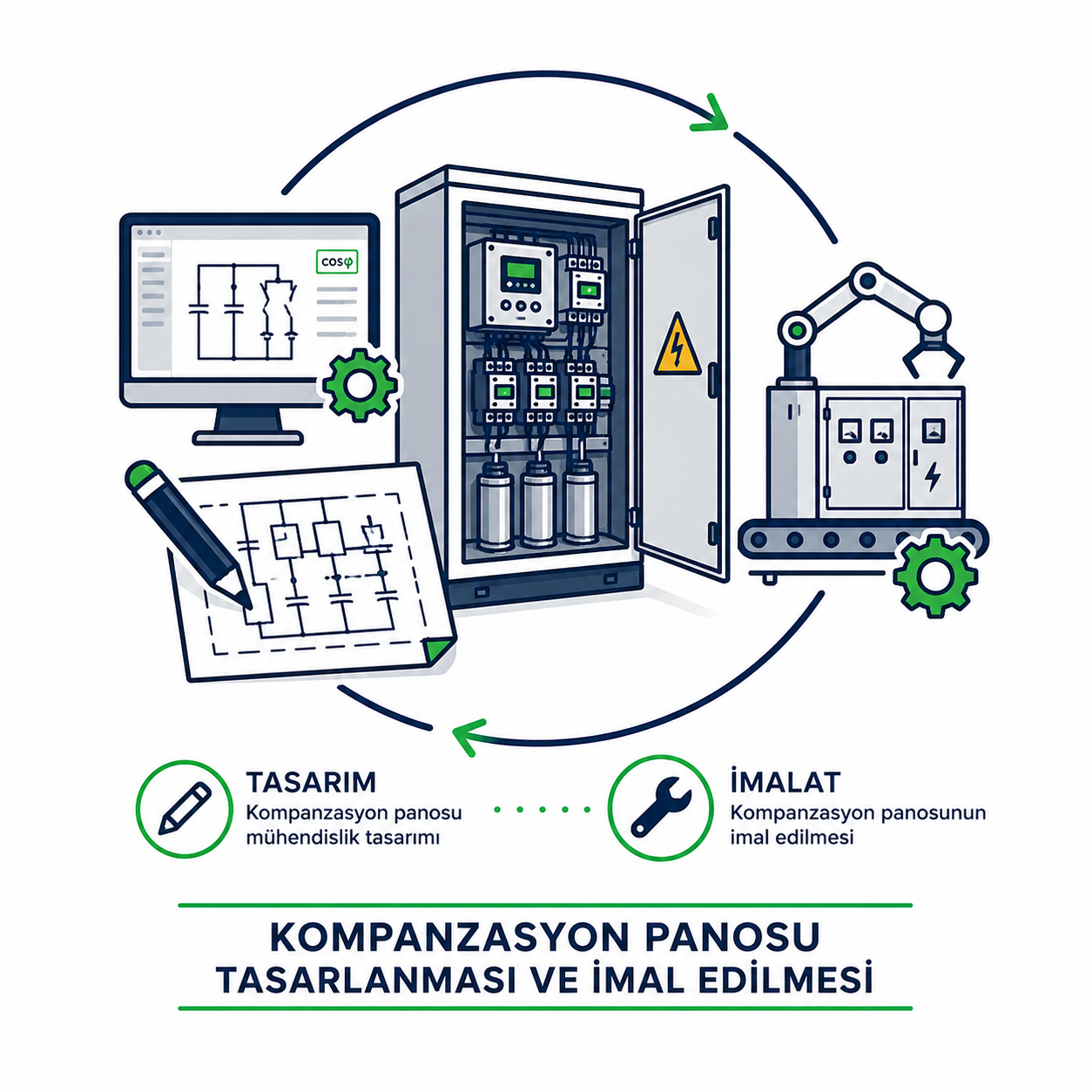 Reaktif ceza önleme – özel projeye göre kompanzasyon panosu tasarımı ve imalatı.